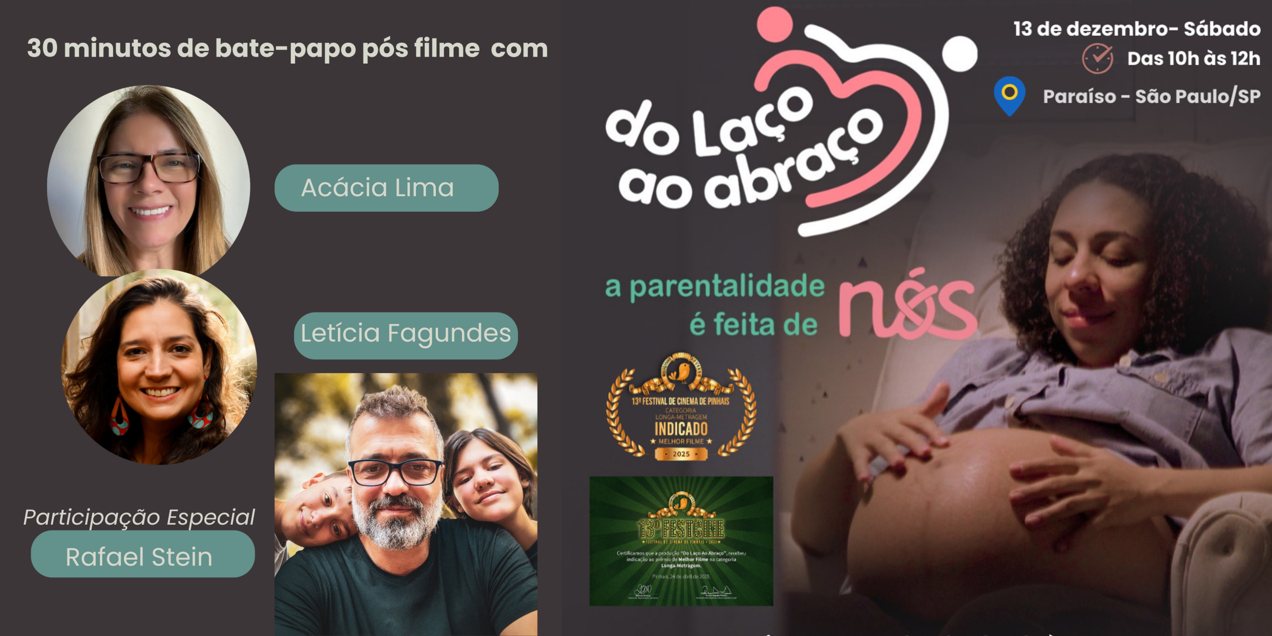Sobre a Somos Mães: A Somos Mães é uma organização sem fins lucrativos dedicada ao apoio e à informação para gestantes e mães. Há mais de 10 anos produz conteúdo e realiza cursos, palestras e ações sociais. Além de ser a proponente do projeto Do Laço ao Abraço, a Somos Mães teve seu segundo projeto incentivado aprovado pela ANCINE, O Segundo Abraço, que abordará a adolescência e será lançado em 2026.
